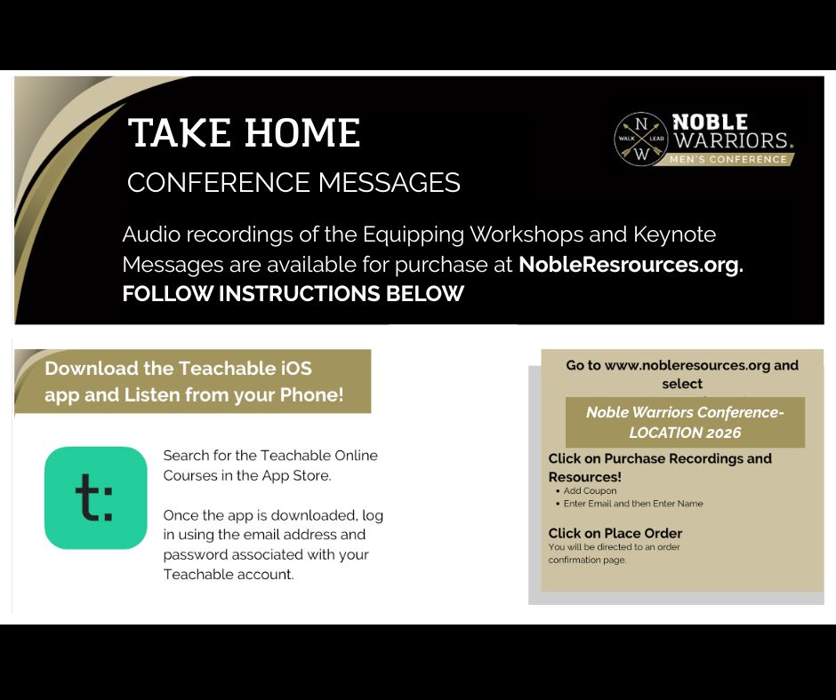 If you were unable to make it to the Chesapeake Noble Warriors Men’s Conference OR you came and want to remember the messages from the keynote and workshop presenters, you can purchase the recordings for just $25! To access the recordings, click HERE!