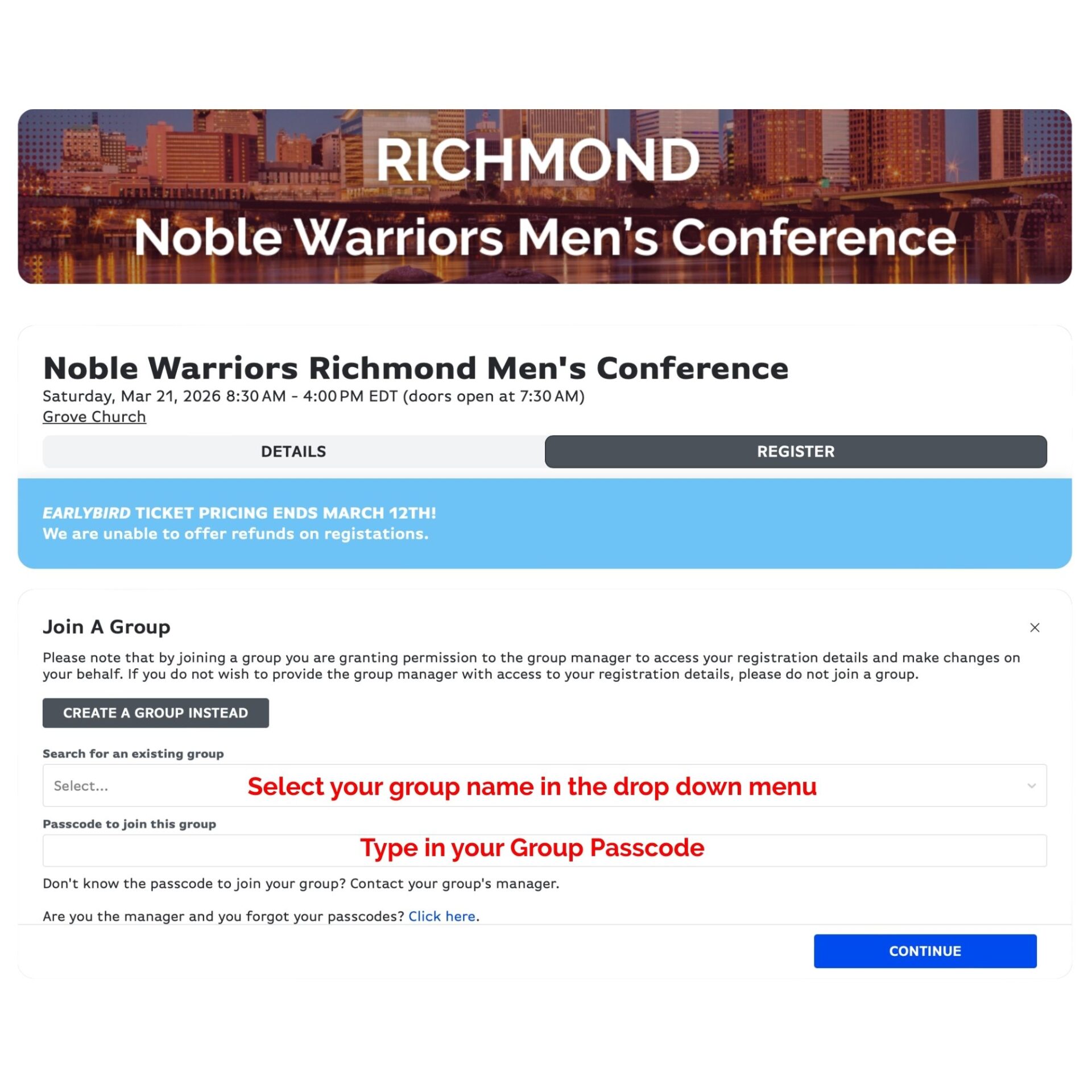 - When you visit the Registration Page, you have the option to join your church group for the discounted rate!